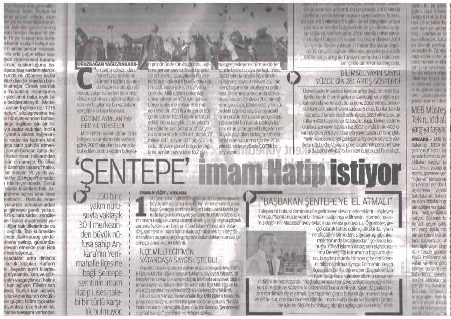 sonuncusu. Kurumlar ise bu duruma kayıtsız. İlçemizde bulunan Tevfik İleri İmam Lisesi Ankara ‘Merkez’ İmam Hatip Lisesi olması sebebiyle tüm Ankara’dan başvurular yapılmakta bu yüzden talepleri karşılayamamaktadır. Zaten halihazırda devam eden inşaatı sebebiyle başka okullarda eğitim vermektedir. Diğer imam hatip lisesi ise Demetevler İmam Hatip Lisesi. Okul 2011 yılında hayırseverler tarafından yapıldı. Okulun ders programını gördüğümde hayretler içinde kaldım. Bir lisesinin 69 sayfalık ders programı olması İmam Hatip okuluna olan ihtiyaç ve talebi göstermeye yetiyor, başka söze gerek bırakmıyor. Geçiçi tahsis edilen binalarla takviye edilmeye çalışılıyor.