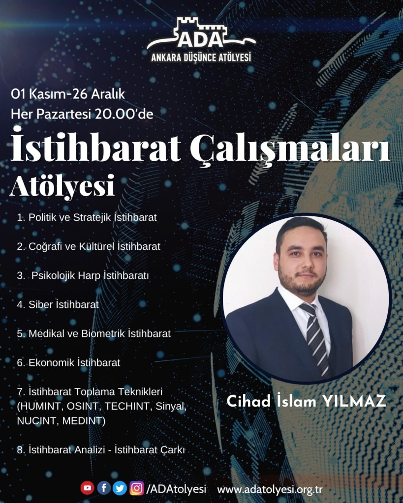 8 hafta boyunca akademik ‘İstihbarat Çalışmaları’ atölyesinde hocalarımız ile birlikte bir çok konuyu ele alacağız.