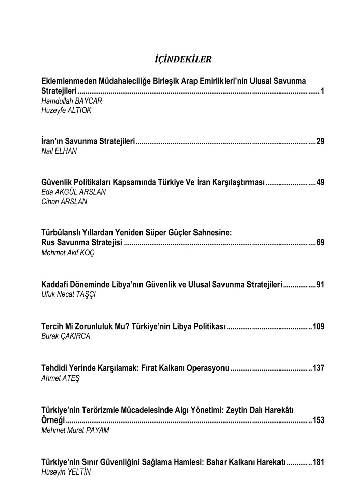 - Eklemlenmeden Müdahaleciliğe Birleşik Arap Emirlikleri’nin Ulusal Savunma Stratejileri