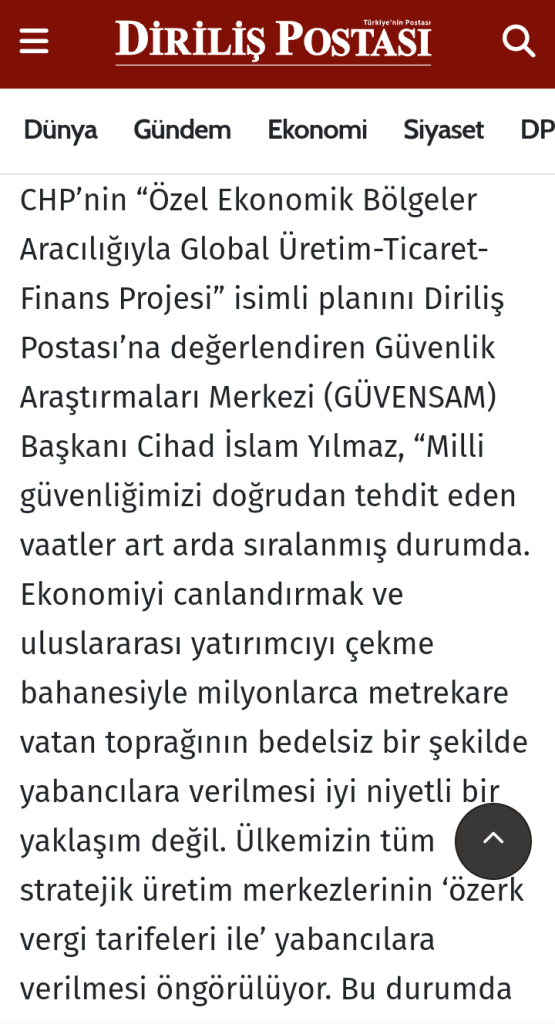 Diriliş Postası Gazetesine vermiş olduğum röportaja aşağıdaki linkten ulaşabilirsiniz. https://www.dirilispostasi.com/haber/14955956/ozerkligin-yolu-ekonomiden-geciyor